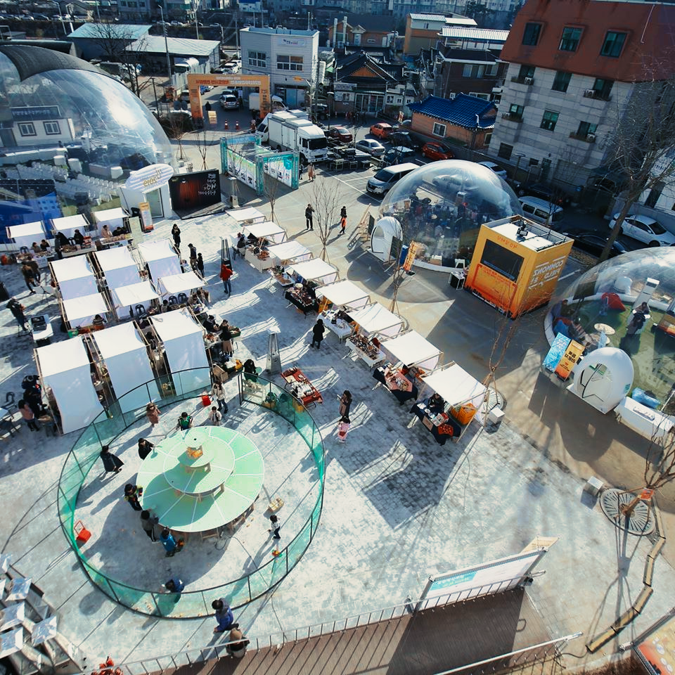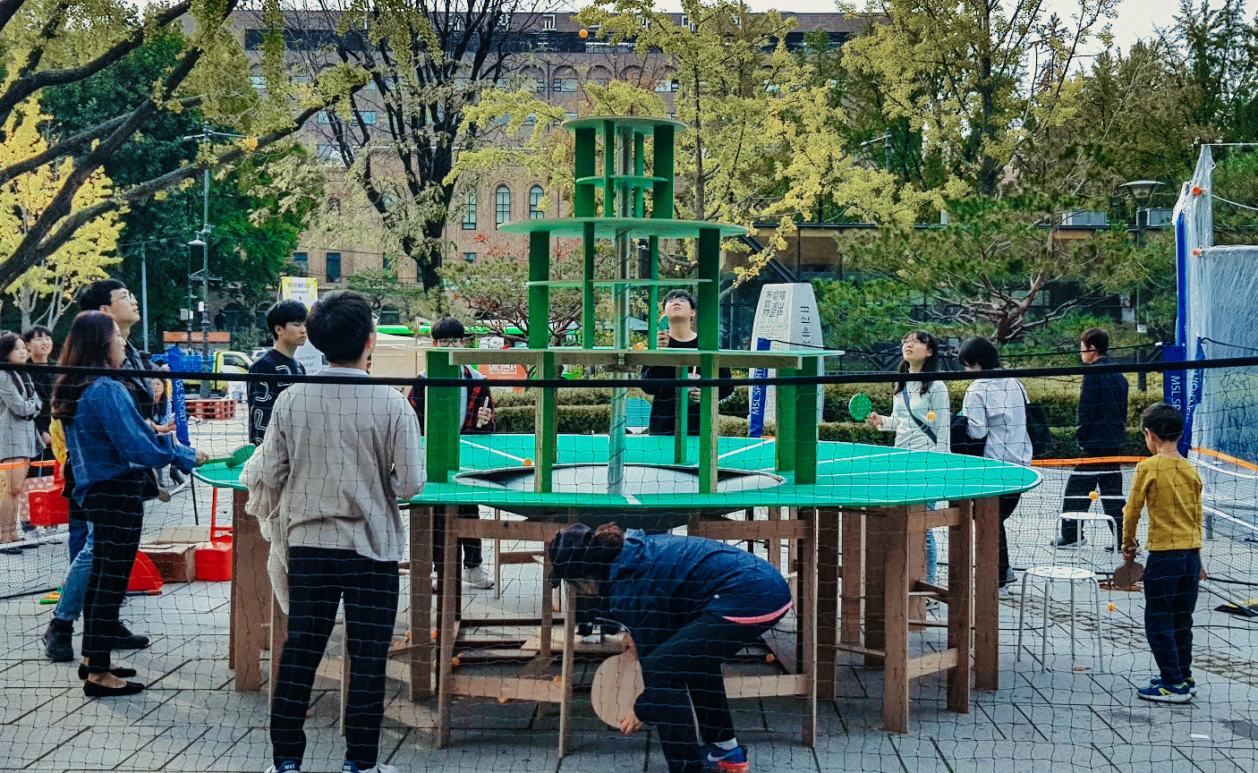 탁구대폭포는 룰이 없는 직관적인 놀이기구이다. 300개의 탁구공이 하늘로 치솟고 각 레이어를 따라 내려오고 다시 하늘로 솟구친다. 참여자는 어디로 떨어질지 모르는 공을 쫓으며 놀이에 참여하게 된다.